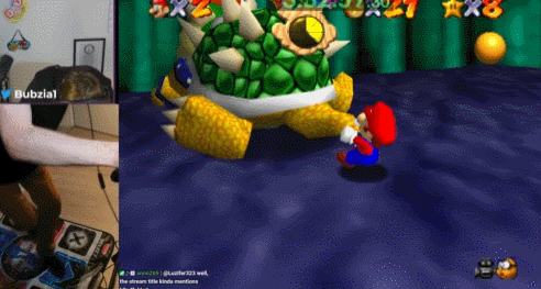 这次挑战的目标是完成16星速通。但是刚开始,他就忘记了游戏的基本操作。在尝试获取第一个星星时,他突然问道:“等等,怎么做地面重击?我的马力奥物理知识已经崩溃了。是按A和Z,对吧?”尽管他最终成功拿下第一个星星,还获得了几个其他星星,但每一个都耗费很多精力。事实证明,用脚操控马力奥并将模拟摇杆的操作映射到跳舞毯上,是对身心的巨大挑战。Bubzia感慨道:“这真是对大脑的极限考验,精神压力比体力消耗更大。”